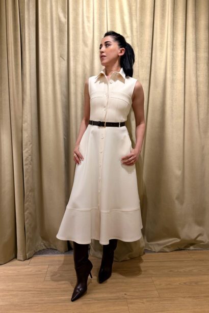 Midi Boy – Zamansız ve Sofistike Bir Kesim: Krem renginin aurasını destekleyen midi boy ölçüsü, hem gündüz hem gece şıklığını aynı anda sunar. Boy oranı; ince, uzun ve dengeli bir siluet oluşturur.