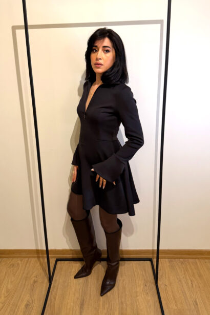 Gömlek yaka elbisenin dik yakaları, tarzınıza farklı bir özellik katar.